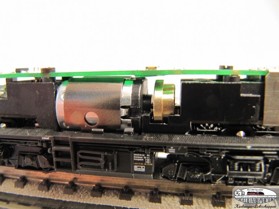 Darunter befindet sich der ''nicht mehr Typische Fleischmann Motor'' sondern ein wartungsfreier mit einer Schwungmasse.