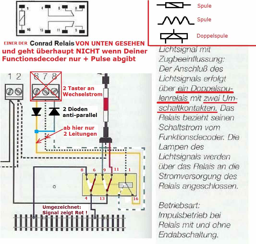 - 1 Relais mit 2x Um das dann parallel zum (nur 2-begriffigen) Lichtsignal geschaltet wird;