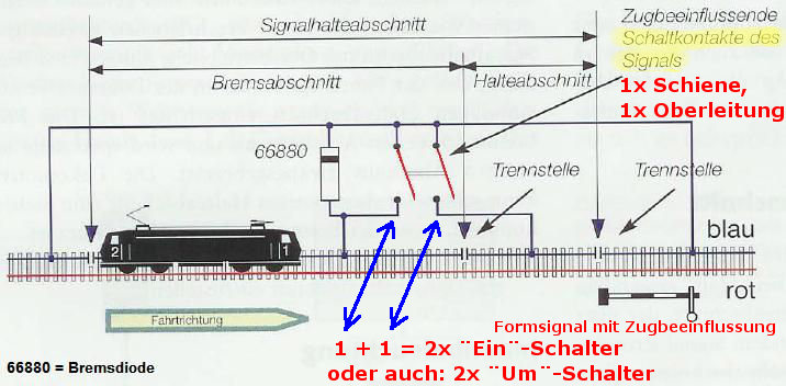 "sieht" das eine Halbwelle fehlt und bremst den Zug ab. Das gleiche Prinzip gibt es mit 1:4 Dioden.
