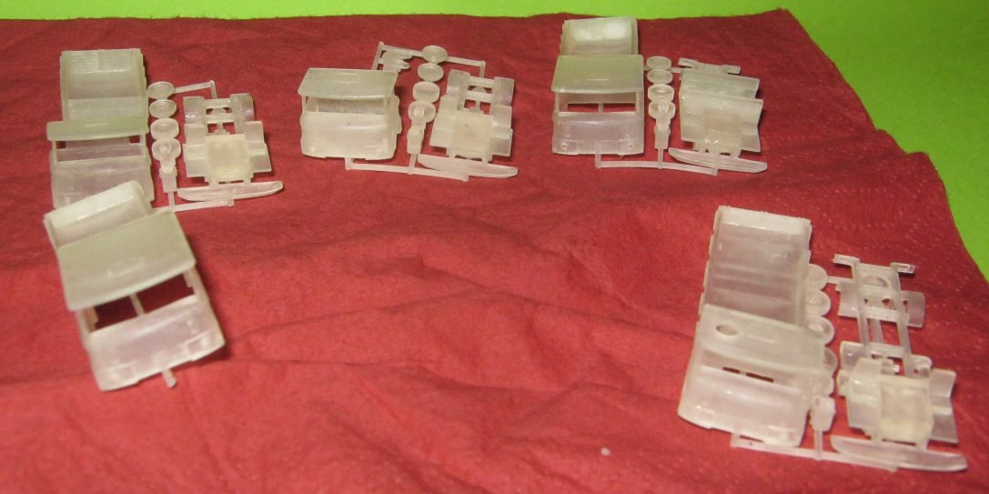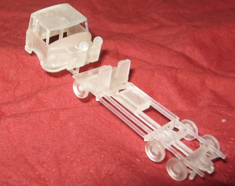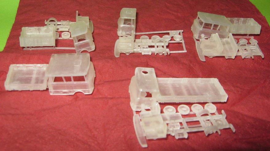Ich habe da mal ein paar Bilder der letzten Lieferung von 3D-Teilen von Shapways die ich zur Eröffnung zeigen will. Im Moment warte ich auf das trocknen der Farbe, dann kommen auch noch buntere Bilder. Ausser dem warte ich auf die Ätzteile wie Kühlergrill, Lenkrad und Spiegel, aber das wird leider noch 14 Tage dauern.