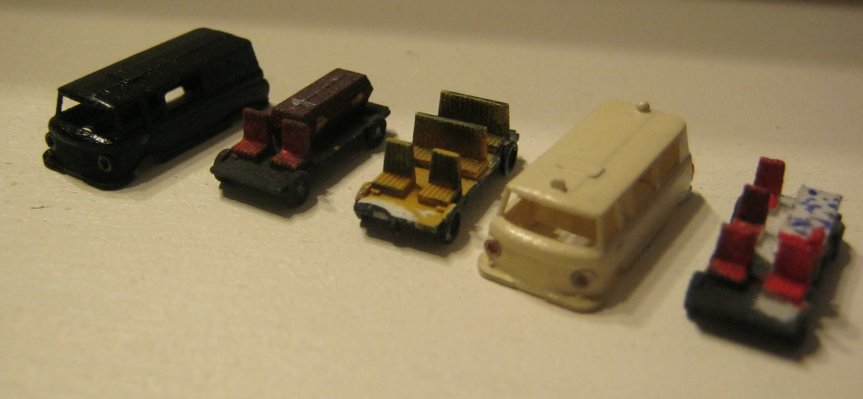 Die Littke Fahrzeuge erscheinen mir -- zumindest die paar, die ich mal wo gesehen habe -- etwas zu groß. Fast wie 1:150, obwohl sie ja exakt maßstäblich sein sollen.