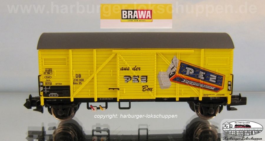 Die "PEZ"-Bedruckung gab es auch schon als Gmhs 35, hier jetzt also als G 10. Die 2€ Aufpreis hat selbiger übrigens auch; ebenso die H0-Version des G 10. Wahrscheinlich Lizenzgebühren für das Logo. Ob die Wagen ein Vorbild haben, habe ich meine Zweifel (LKW in der Farbgebung finden sich allerdings).