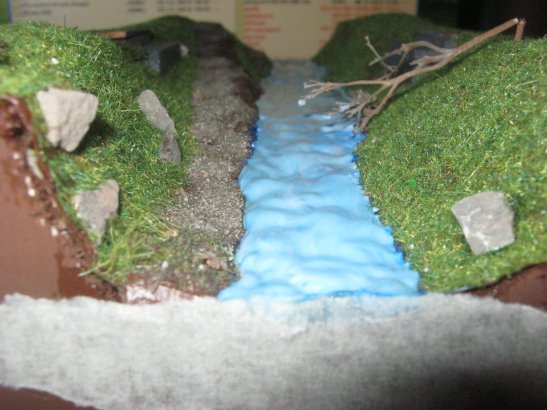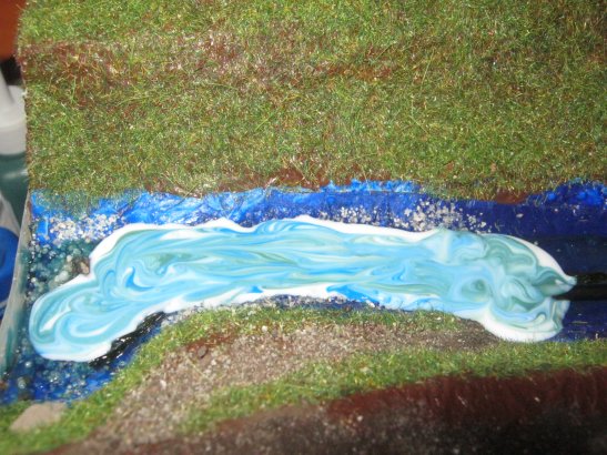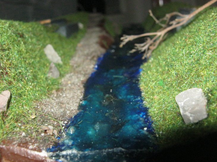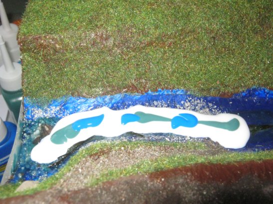 Ich habe meinen Bach auf einem Z-Stück mit Windowscolor gemacht. 75% Klar und dann mit blau und grün im Flußbett gemischt. Mehrere Tage Trockenzeit zwischen den schichten.