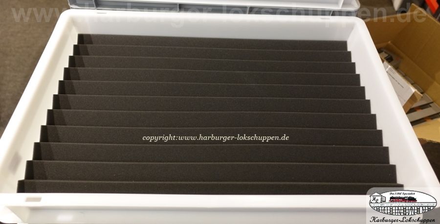 Ich habe nämlich das Problem das ich schon zwei Schränke mit Schubladen hatte, aber für diese Einlagen wegen der Höhe nur sehr knapp passen. Bei den Wagen sind noch 3-4mm drin, bei Loks mit Stromabnehmern schlägt das Herz aber etwas schneller.. ich überlege noch ob ich es so riskiere oder neue Schubladen baue. Evtl würde ich für die E-loks eine Alternative brauchen.